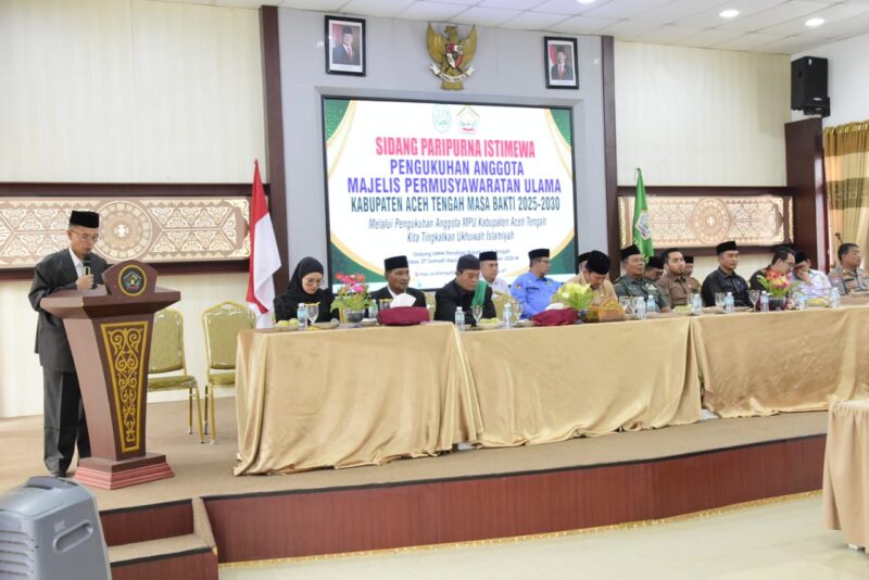 Takengon – Pemerintah Kabupaten Aceh Tengah menggelar Sidang Paripurna Istimewa Pengukuhan Anggota Majelis Permusyawaratan Ulama (MPU) Kabupaten Aceh Tengah Masa Bakti 2025–2030, pada Selasa, (18/11/2025), di Gedung Ummi Pendopo Bupati Aceh Tengah.