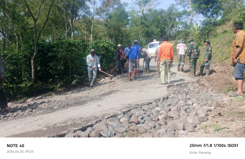 Dalam kegiatan gotong royong tersebut, turut hadir Babinsa serta Danpos Kute Panang yang membantu proses perbaikan bersama masyarakat.