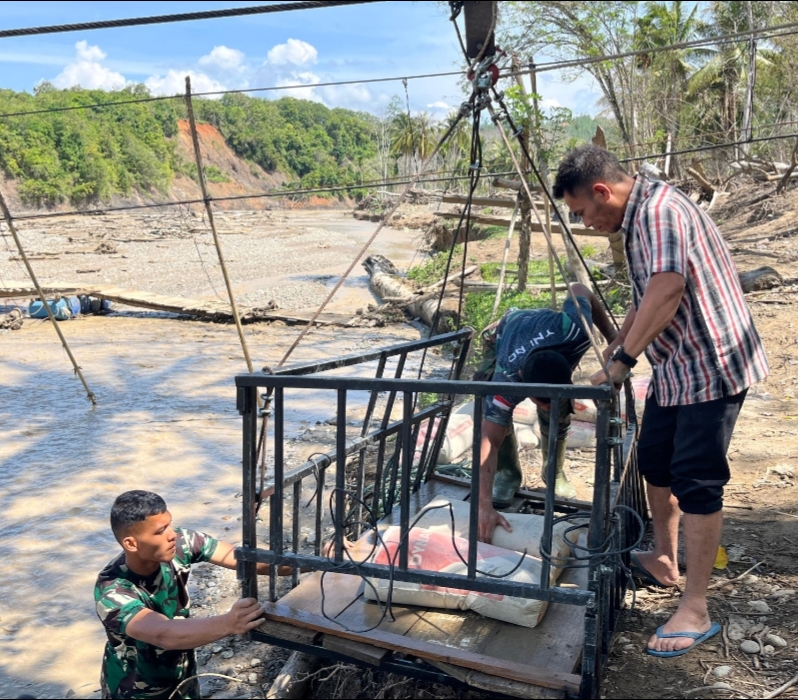 Saat ini akses ke seberang hanya menggunakan dengan tali seling darurat,karna jembatan gantung lagi dalam kondisi peperbaikan ujar joharsyah.