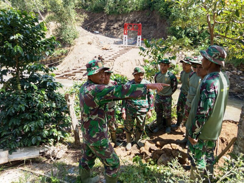 ‎Progres 56,1 Persen, Pembangunan Jembatan Gantung Burlah Dikebut Personel Kodim 0106/Aceh Tengah