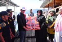 Takengon – pilargayonews.com | Bupati Aceh Tengah, Drs. Haili Yoga, M.Si menyerahkan bantuan 80 unit life jacket dari Kementerian Perhubungan kepada 16 pemilik kapal…