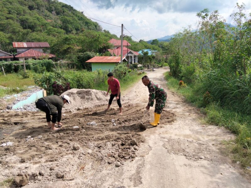 Takengon – Wujud nyata kemanunggalan TNI dengan rakyat kembali ditunjukkan oleh Babinsa Koramil 01/Lut Tawar melalui kegiatan karya bakti bersama masyarakat di wilayah binaan.