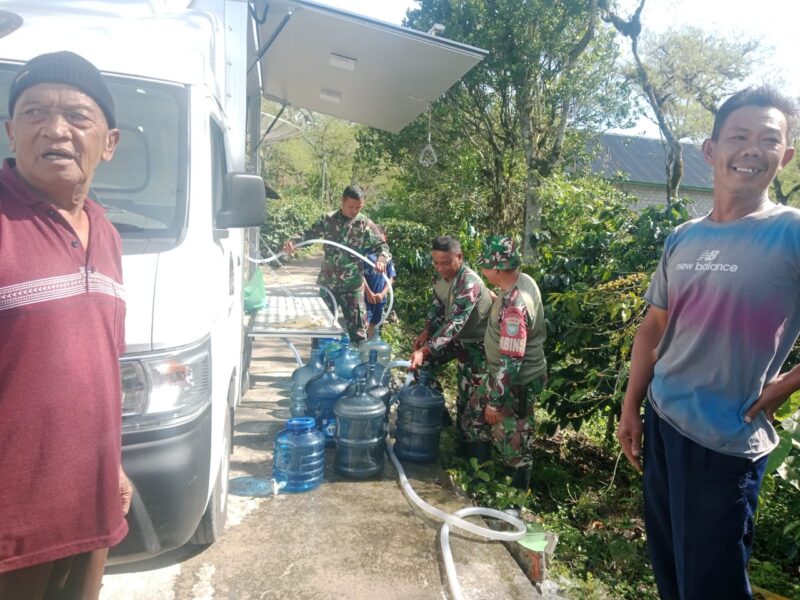 TAKENGON – Anggota Koramil 03/Pegasing, Serda Adi Rahmanto, mendampingi Staf Logistik Kodim 0106/Aceh Tengah dalam kegiatan penyaluran air bersih Reverse Osmosis (RO) kepada masyarakat Desa Tebes Lues, Senin (23/2/2026).