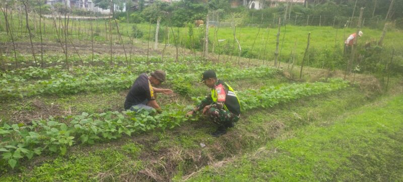 Dalam kegiatan tersebut, Sertu Adami bersama warga membersihkan tanaman kacang merah di kebun milik Bapak Udin. Aksi ini merupakan bagian dari komunikasi sosial (komsos) Babinsa untuk mempererat hubungan dengan masyarakat sekaligus membantu meningkatkan produktivitas pertanian warga.
