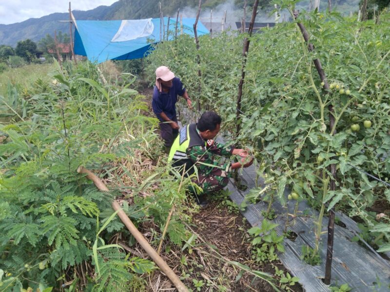 Babinsa Koramil 04/Bintang Bantu Warga Rawat Tanaman Tomat di Desa Gegarang