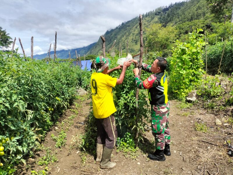 Babinsa Koramil 04/Bintang Bantu Warga Rawat Tanaman Tomat di Desa Kelitu