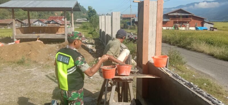 Sertu Amris Gunawan turun langsung membantu pembuatan pagar rumah milik warga setempat, Eky, sebagai bentuk kepedulian dan kedekatan TNI dengan masyarakat. Kegiatan ini juga menjadi ajang silaturahmi untuk memperkuat hubungan Babinsa dengan warga binaannya.