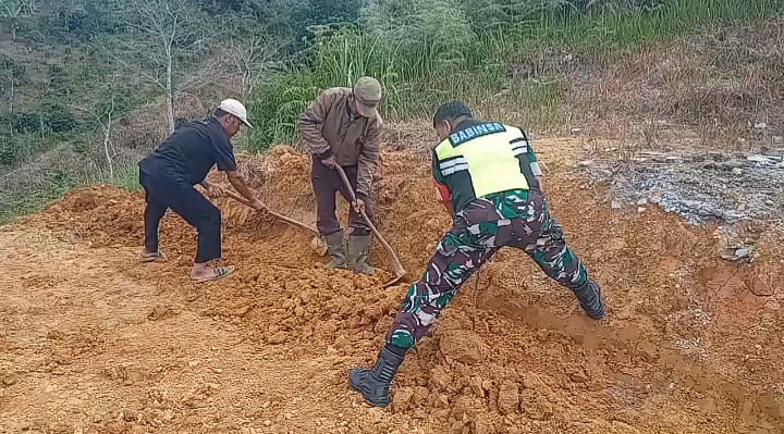 Takengon – Wujud kemanunggalan TNI dengan rakyat kembali terlihat melalui kegiatan gotong royong yang dilaksanakan Babinsa Koramil 07/Atu Lintang, Kodim 0106/Aceh Tengah.