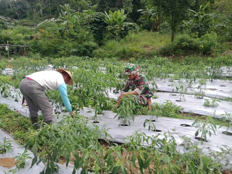 Babinsa Koramil 07/Atu Lintang Dampingi Warga Rawat Tanaman Cabai di Desa Damar Mulyo