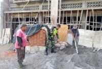 Aceh Tengah – Babinsa Koramil 02/Bebesen, Kodim 0106/Aceh Tengah, Serma FB. Kalalo melaksanakan kegiatan karya bakti dengan membantu masyarakat mengecor rumah di Desa Blang…