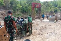 Aceh Tengah – Anggota Koramil 09/Ketol Posko Bergang, Kecamatan Ketol, Kabupaten Aceh Tengah, melaksanakan pengawasan kegiatan pembersihan jalan yang terdampak bencana longsor dan banjir,…