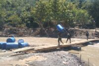 Takengon- Kodim 0106/Aceh Tengah menyalurkan drum plastik sebanyak 30 Buah untuk bahan baku jembatan Kampung Reje Payung kemukiman jamat Kec. Linge Kab. Aceh Tengah….