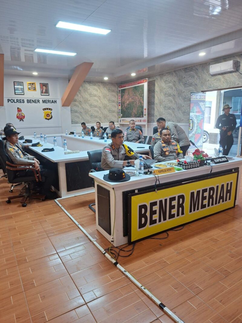Bener Meriah – Kapolda Aceh Irjen Pol. Drs. Marzuki Alibasyah, M. M, mengikuti kegiatan rilis akhir tahun 2025 yang diselenggarakan Mabes Polri secara virtual dari Polres Bener Meriah, Selasa, 30 Desember 2025.