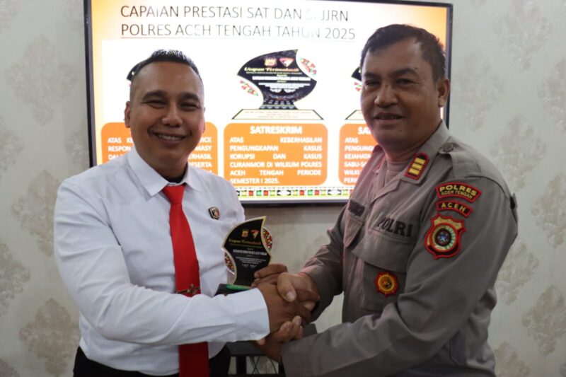 Penghargaan tersebut diserahkan langsung oleh Kapolres dalam kegiatan Gelar Operasional yang berlangsung di Aula Rupatama Polres Aceh Tengah, Senin (11/8/2025).