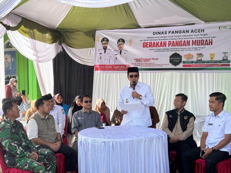 Takengon – Antusiasme masyarakat tampak begitu tinggi saat Gerakan Pangan Murah (GPM) digelar di halaman Masjid Latifah, Kampung Kayu Kul, Kecamatan Pegasing, Kabupaten Aceh Tengah, Rabu, (04/03/2026). Antusiasme masyarakat terlihat dari panjangnya antrean sejak pagi hari untuk mendapatkan kebutuhan pokok dengan harga terjangkau.