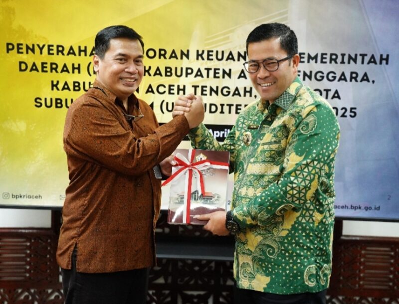 Banda Aceh – Pemerintah Kabupaten Aceh Tengah menyerahkan Laporan Keuangan Pemerintah Daerah (LKPD) Tahun Anggaran 2025 (Unaudited) kepada Badan Pemeriksa Keuangan (BPK) RI Perwakilan Provinsi Aceh, bertempat di Kantor BPK RI Perwakilan Provinsi Aceh, Kamis (16/04/2025).
