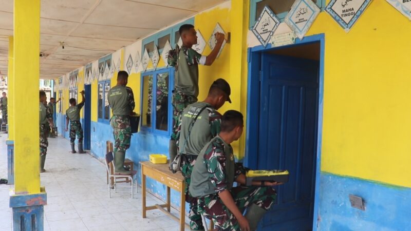 Percantik SD Negeri 9 Takengon Anggota TNI Cat Ulang Bangunan Sekolah