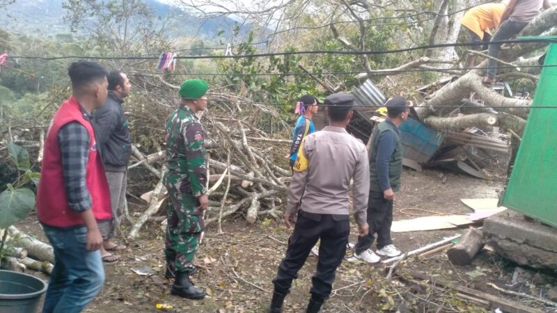 “Setelah menerima informasi, personel langsung menuju lokasi kejadian guna membantu warga membersihkan material pohon tumbang serta mengecek kondisi rumah yang terdampak,” ujar AKP Iskandar Wijaya.