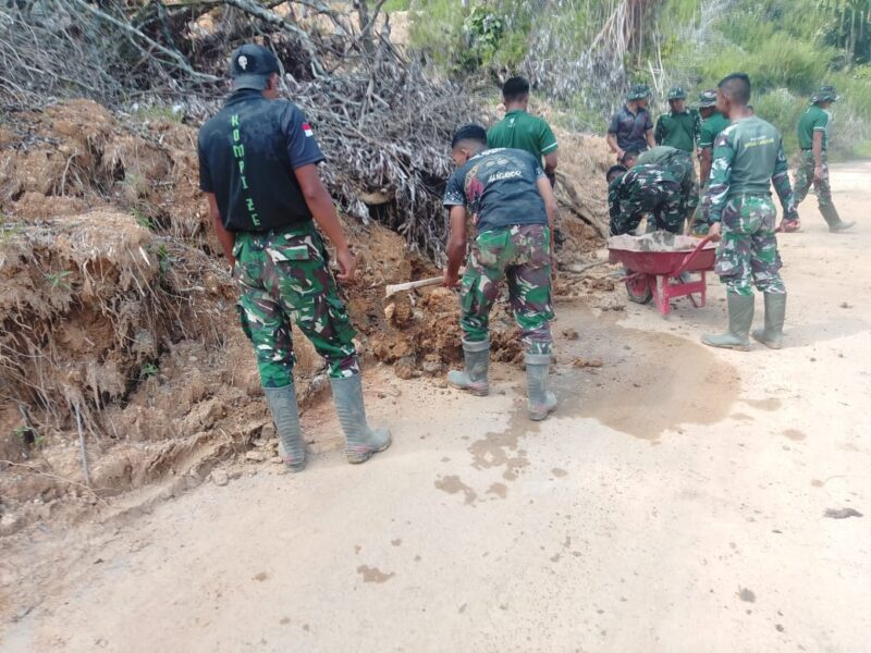 Takengon – Personel Satuan Tugas Penanggulangan Bencana (Satgas Gulbencal) bersama personel TNI dan masyarakat melaksanakan kegiatan pembersihan material banjir dan tanah longsor di ruas jalan Takengon–Bintang, tepatnya di Dusun Kalang, kawasan Ujung Sere, Kampung Rawe, Kecamatan Lut Tawar, Kabupaten Aceh Tengah, Selasa (10/3/2026).