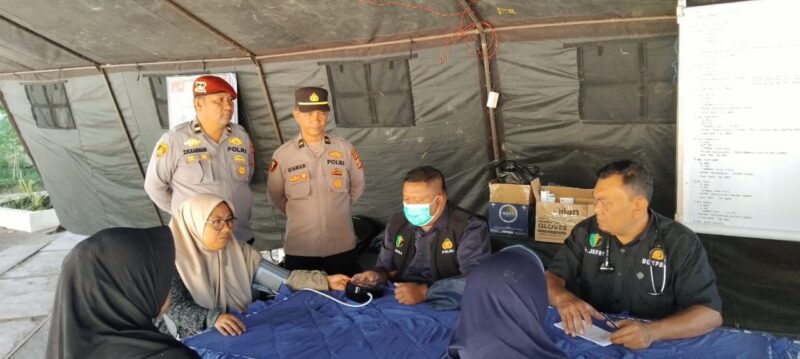 Petugas medis Sidokkes Polres Aceh Tengah turun langsung memberikan pemeriksaan kesehatan, layanan konsultasi, penanganan medis, serta menyalurkan obat-obatan dan vitamin gratis bagi warga yang terdampak banjir, banjir bandang, dan tanah longsor.
