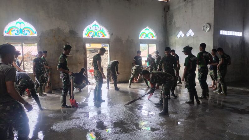 Pembersihan dilakukan secara gotong royong dengan mengutamakan keselamatan personel dan masyarakat, sehingga fasilitas ibadah dapat kembali digunakan oleh warga setempat.
