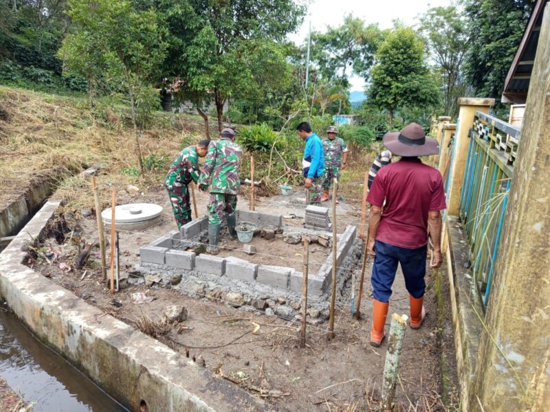 Pekerjaan tersebut dilaksanakan secara gotong royong oleh anggota Satgas TMMD bersama warga setempat. Pembangunan MCK ini diharapkan dapat meningkatkan kualitas kesehatan dan kebersihan lingkungan masyarakat di desa tersebut.