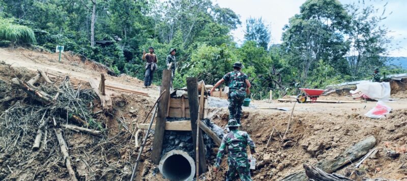 Ia menambahkan, pengerjaan dilakukan secara gotong royong antara personel Satgas TMMD dan masyarakat setempat. Kolaborasi ini sekaligus memperlihatkan semangat kebersamaan dalam mendukung pembangunan infrastruktur desa.