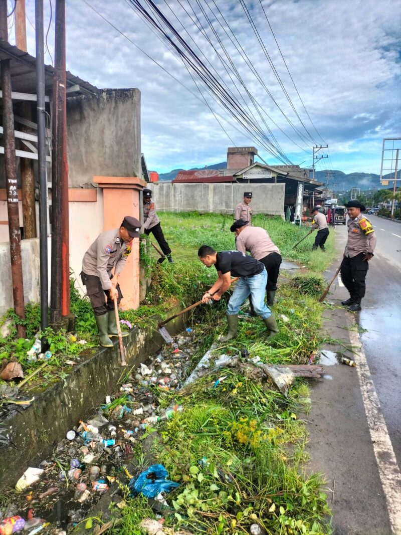 Aceh Tengah — Satuan Lalu Lintas (Satlantas) Polres Aceh Tengah bersama Polsek Bebesen menggelar gotong royong pembersihan drainase di Kampung Blangkolak II, Kecamatan Bebesen, Jumat (10/4/2026) pagi.