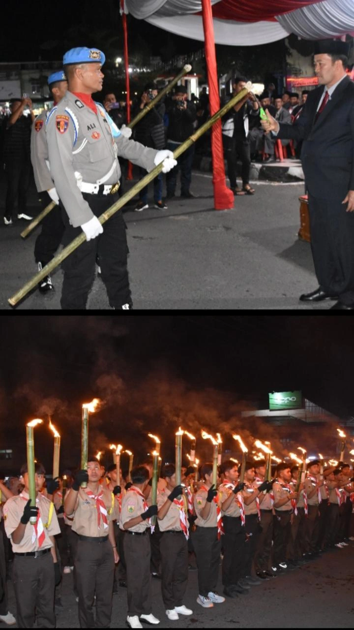 Derap langkah peserta yang berpadu dengan cahaya obor yang bergoyang diterpa angin malam menciptakan suasana heroik dan membangkitkan semangat kebersamaan. Setiap hentakan kaki seolah menggaungkan pesan persatuan, sementara cahaya api yang menyala menjadi simbol semangat perjuangan yang tak pernah padam.