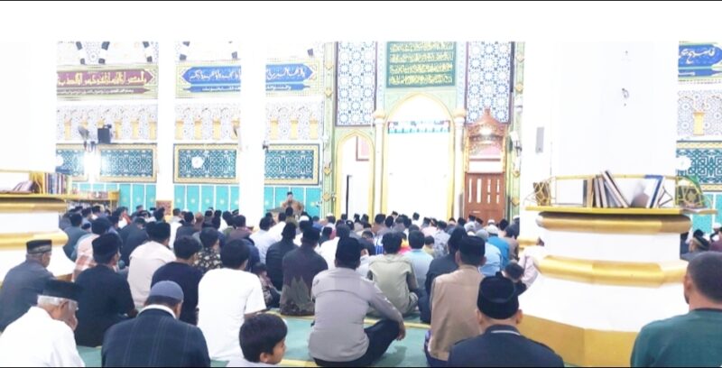 “Menjalankan ibadah puasa adalah untuk pengendalian diri dan menahan diri dari yang dilarang. Misalnya makan di siang hari sebelum waktu berbuka dan membicarakan orang lain. Jika itu dilakukan tentu akan mengurangi pahala puasa,” ujarnya di hadapan jamaah.